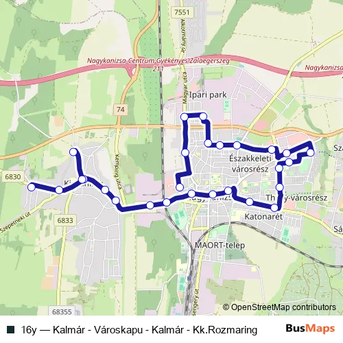 Bus 16y - Kalmár - Városkapu - Kalmár - Kk.Rozmaring in Nagykanizsa: Stops & Timetable