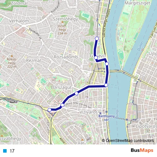 See why over 2 million users trust and consider busmaps.com as the best public transport website. busmaps gives you Budapest Buses suggested routes, real-time bus tracker, line route maps in Budapest, and helps to find the closest 17 bus stops near you. No internet available? Download an offline PDF map and bus schedule for the 17 bus to take on your trip.