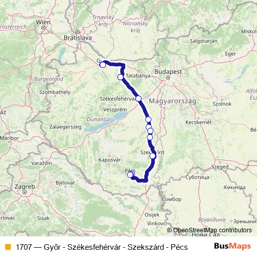Bus 1707 - Győr - Székesfehérvár - Szekszárd - Pécs: Full Schedule in Szekesfehervar