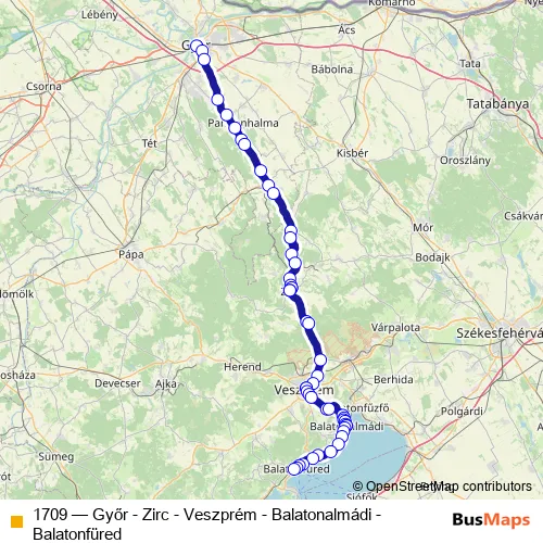 Click here to view the nearest 1709 - Győr - Zirc - Veszprém - Balatonalmádi - Balatonfüred bus stop.
