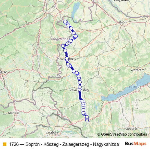 Bus 1726 - Sopron - Kőszeg - Zalaegerszeg - Nagykanizsa Schedule in Szombathely