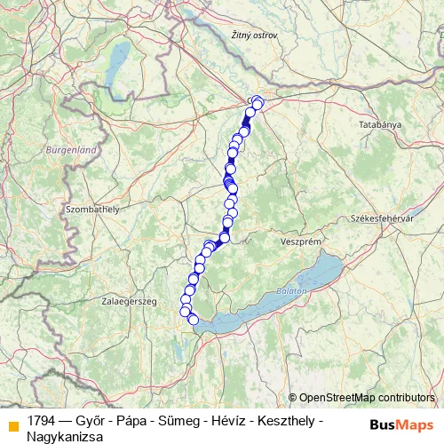 Click here to view the nearest 1794 - Győr - Pápa - Sümeg - Hévíz - Keszthely - Nagykanizsa bus stop.