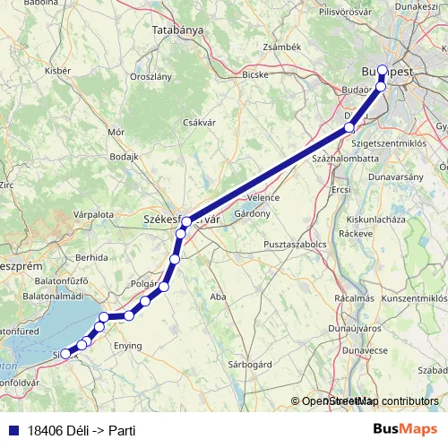 The first stop of the 18406 Déli -> Parti rail route is Budapest-Déli and the last stop is Siófok. 18406 Déli -> Parti (18406 Déli -> Parti) is operational during on weekdays.