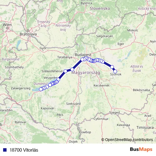 Additional information: 18700 Vitorlás has 36 stops and the total trip duration for this route is approximately 268 minutes.