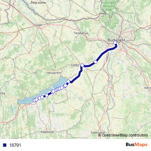 The first stop of the 18791 rail route is Fonyód and the last stop is Budapest-Kelenföld. 18791 is operational during everyday.
