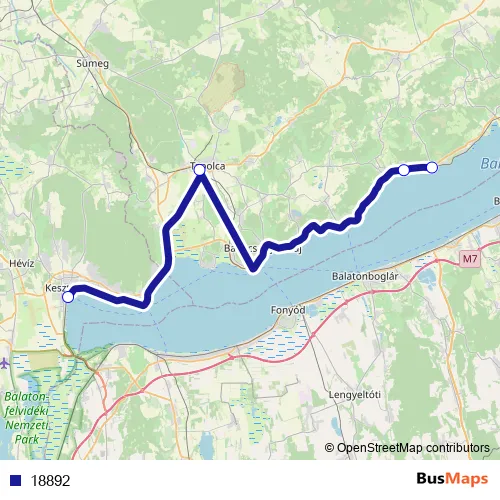 The first stop of the 18892 rail route is Keszthely and the last stop is Balatonakali-Dörgicse. 18892 is operational during everyday.