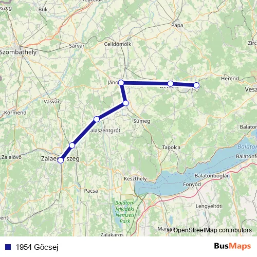 Additional information: 1954 Göcsej has 7 stops and the total trip duration for this route is approximately 86 minutes.