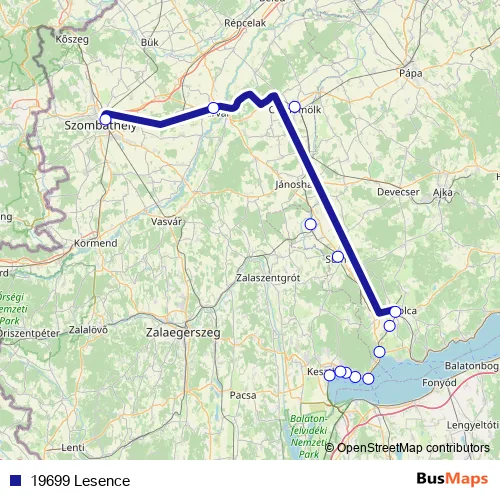 Vasút utca - Rockwool út - Vasút utca - Major - Balaton utca - Petőfi Sándor utca - Fürdő utca - Széchenyi István utca - Kazinczy Ferenc utca