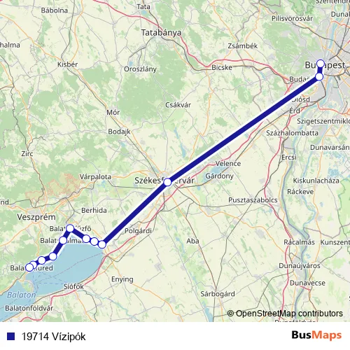 The first stop of the 19714 Vízipók rail route is Budapest-Déli and the last stop is Balatonfüred. 19714 Vízipók (19714 Vízipók) is operational during everyday.