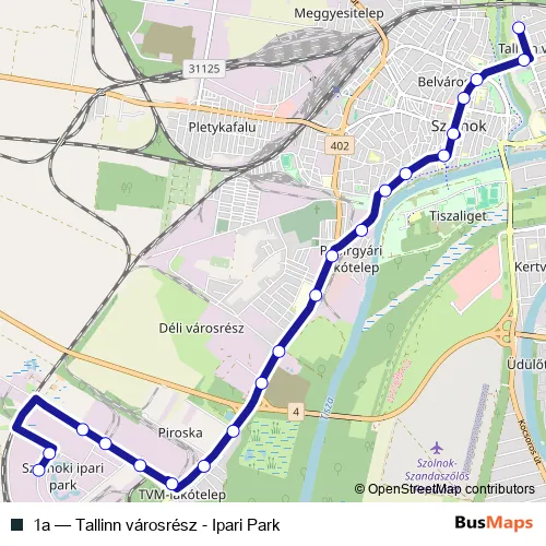 Bus 1a - Tallinn városrész - Ipari Park in Szolnok: Stops & Timetable