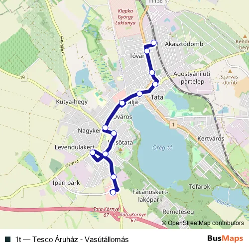 Bus 1t - Tesco Áruház - Vasútállomás: Full Schedule in Tata