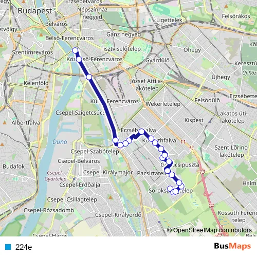See why over 2 million users trust and consider busmaps.com as the best public transport website. busmaps gives you Budapest Buses suggested routes, real-time bus tracker, line route maps in Budapest, and helps to find the closest 224e bus stops near you. No internet available? Download an offline PDF map and bus schedule for the 224e bus to take on your trip.