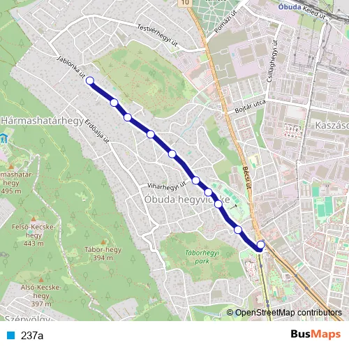 The first stop of the 237a bus route is Jablonka út and the last stop is Bécsi út / Vörösvári út. 237a is operational during everyday.