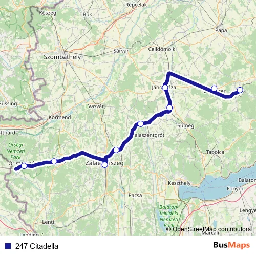 The first stop of the 247 Citadella rail route is Őriszentpéter and the last stop is Ajka. 247 Citadella (247 Citadella) is operational during everyday.