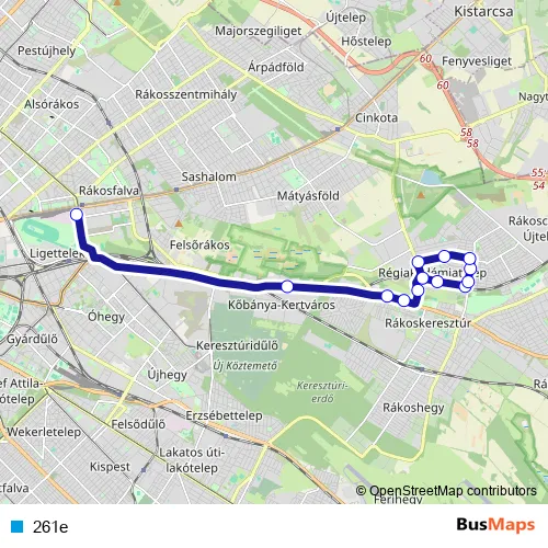 Bus 261e in Budapest: Stops & Timetable