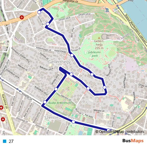 See why over 2 million users trust and consider busmaps.com as the best public transport website. busmaps gives you Budapest Buses suggested routes, real-time bus tracker, line route maps in Budapest, and helps to find the closest 27 bus stops near you. No internet available? Download an offline PDF map and bus schedule for the 27 bus to take on your trip.