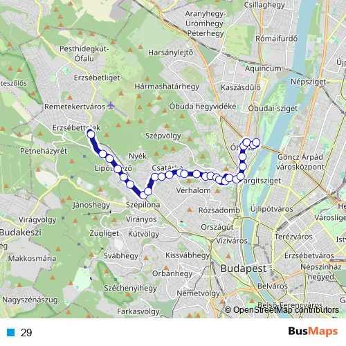 See why over 2 million users trust and consider busmaps.com as the best public transport website. busmaps gives you Budapest Buses suggested routes, real-time bus tracker, line route maps in Budapest, and helps to find the closest 29 bus stops near you. No internet available? Download an offline PDF map and bus schedule for the 29 bus to take on your trip.