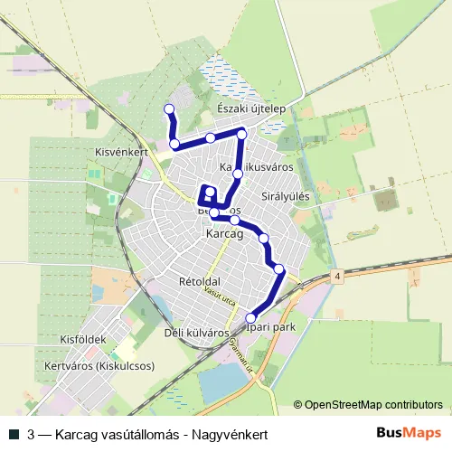 Karcag, Nagyvénkert. 3 (Karcag vasútállomás - Nagyvénkert) is operational during everyday.