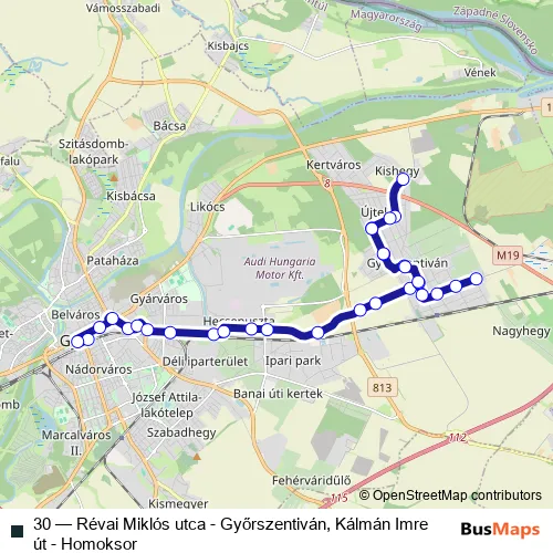 Click here to view the nearest 30 - Révai Miklós utca - Győrszentiván, Kálmán Imre út - Homoksor bus stop.