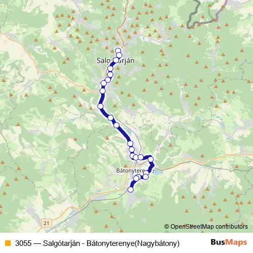 Bus 3055 - Salgótarján - Bátonyterenye(Nagybátony) in Batonyterenye: Stops & Timetable