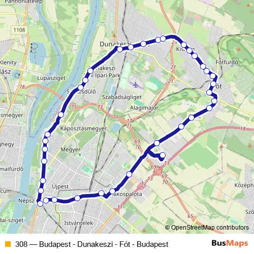 Bus 308 - Budapest - Dunakeszi - Fót - Budapest in Dunakeszi: Stops & Timetable