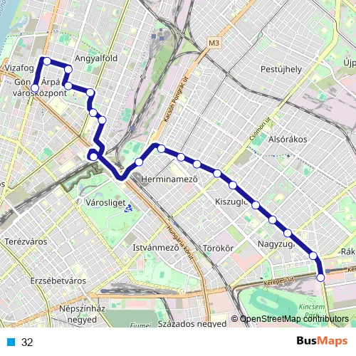See why over 2 million users trust and consider busmaps.com as the best public transport website. busmaps gives you Budapest Buses suggested routes, real-time bus tracker, line route maps in Budapest, and helps to find the closest 32 bus stops near you. No internet available? Download an offline PDF map and bus schedule for the 32 bus to take on your trip.