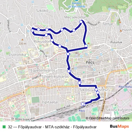 See why over 2 million users trust and consider busmaps.com as the best public transport website. busmaps gives you Pecs Buses suggested routes, real-time bus tracker, line route maps in Pecs, and helps to find the closest 32 bus stops near you. No internet available? Download an offline PDF map and bus schedule for the 32 bus to take on your trip.