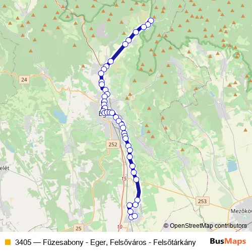 3405 Bus - Füzesabony - Eger, Felsőváros - Felsőtárkány