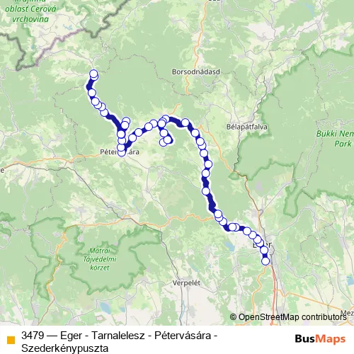 Bus 3479 - Eger - Tarnalelesz - Pétervására - Szederkénypuszta Schedule in Petervasara