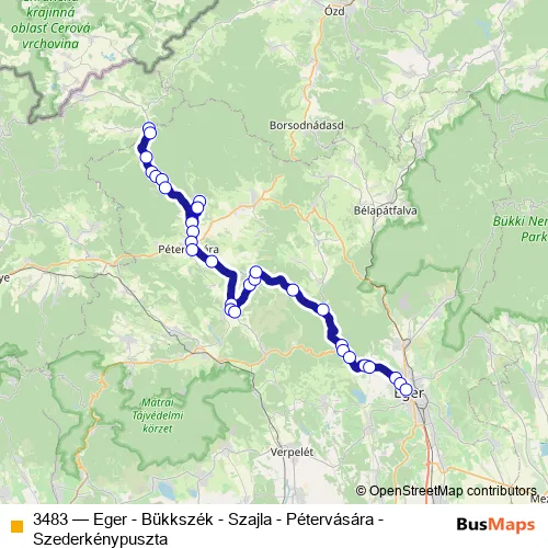 Click here to view the nearest 3483 - Eger - Bükkszék - Szajla - Pétervására - Szederkénypuszta bus stop.