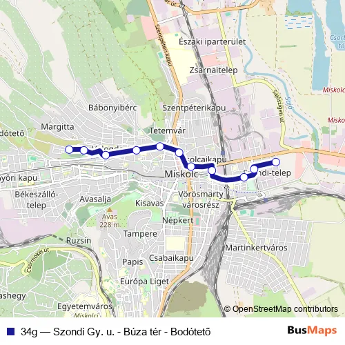 Bus 34g - Szondi Gy. u. - Búza tér - Bodótető: Full Schedule in Miskolc