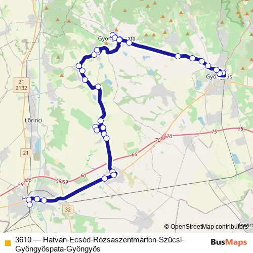 Click here to view the nearest 3610 - Hatvan-Ecséd-Rózsaszentmárton-Szücsi-Gyöngyöspata-Gyöngyös bus stop.