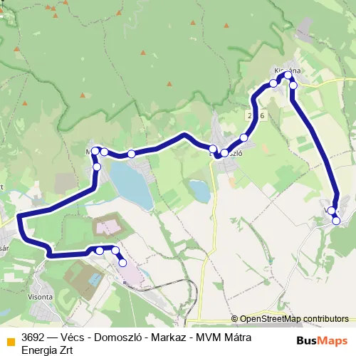 Bus 3692 - Vécs - Domoszló - Markaz - MVM Mátra Energia Zrt: Full Schedule in Gyongyos
