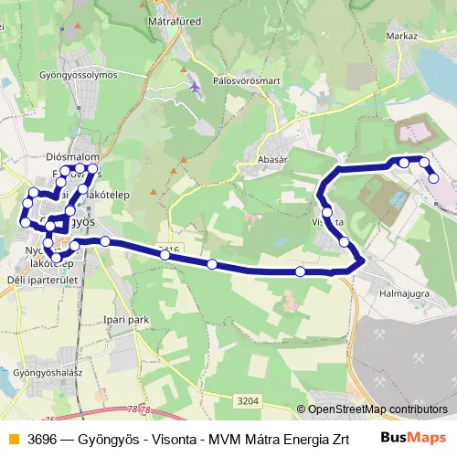 Bus 3696 - Gyöngyös - Visonta - MVM Mátra Energia Zrt: Full Schedule in Gyongyos