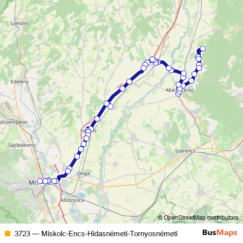 Click here to view the nearest 3723 - Miskolc-Encs-Hidasnémeti-Tornyosnémeti bus stop.