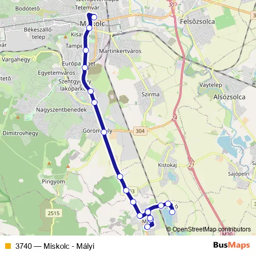 Click here to view the nearest 3740 - Miskolc - Mályi bus stop.