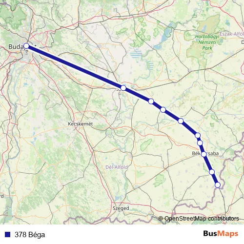 The first stop of the 378 Béga rail route is Lőkösháza and the last stop is Budapest-Keleti. 378 Béga is operational during everyday.