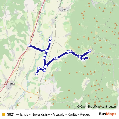 Bus 3821 - Encs - Novajidrány - Vizsoly - Korlát - Regéc: Full Schedule in Encs