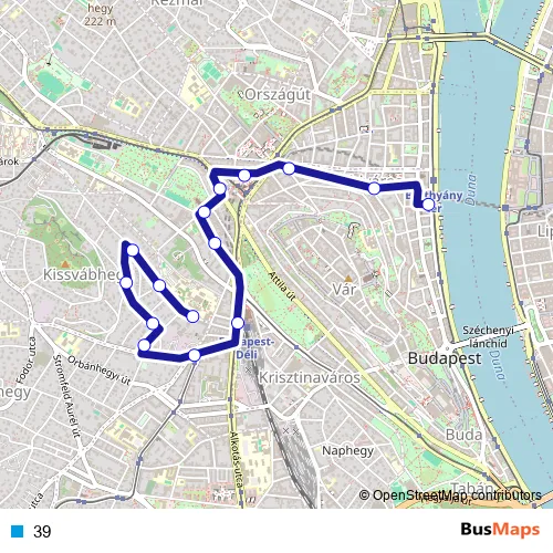 See why over 2 million users trust and consider busmaps.com as the best public transport website. busmaps gives you Budapest Buses suggested routes, real-time bus tracker, line route maps in Budapest, and helps to find the closest 39 bus stops near you. No internet available? Download an offline PDF map and bus schedule for the 39 bus to take on your trip.