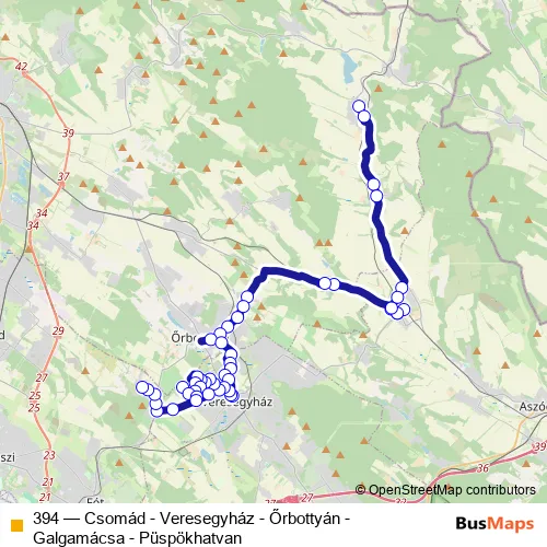 Click here to view the nearest 394 - Csomád - Veresegyház - Őrbottyán - Galgamácsa - Püspökhatvan bus stop.