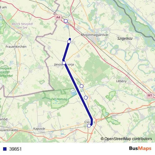 The first stop of the 39851 rail route is Csorna and the last stop is Hegyeshalom. 39851 is operational during everyday.