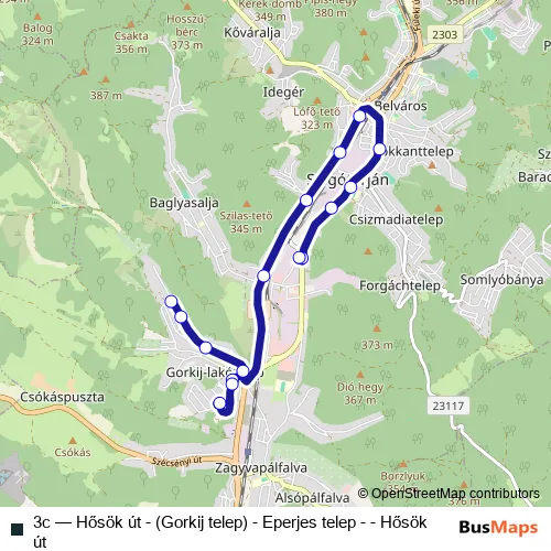 3c (Hősök út - (Gorkij telep) - Eperjes telep - - Hősök út) Bus in Salgotarjan