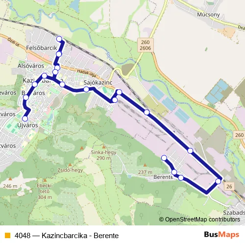 The first stop of the 4048 bus route is Berentebánya and the last stop is Kazincbarcika, autóbusz-állomás. 4048 (Kazincbarcika - Berente) is operational during everyday.