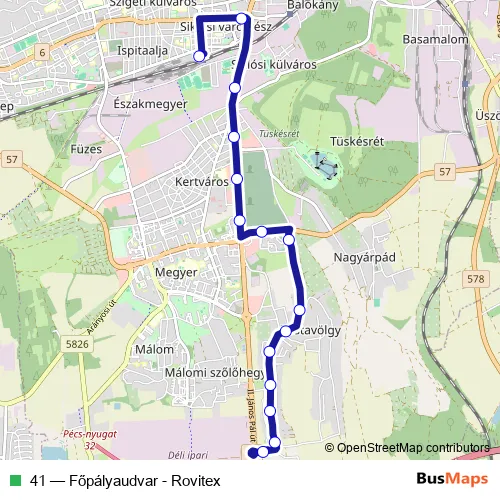 Bus 41 - Főpályaudvar - Rovitex: Full Schedule in Pecs