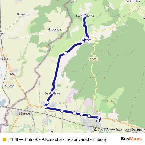 Bus 4188 - Putnok - Alsószuha - Felsőnyárád - Zubogy: Full Schedule in Putnok