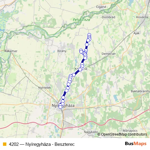 Bus 4202 - Nyíregyháza - Beszterec Schedule in Kemecse
