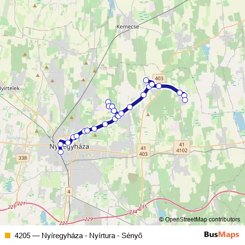 4205 Bus - Nyíregyháza - Nyírtura - Sényő