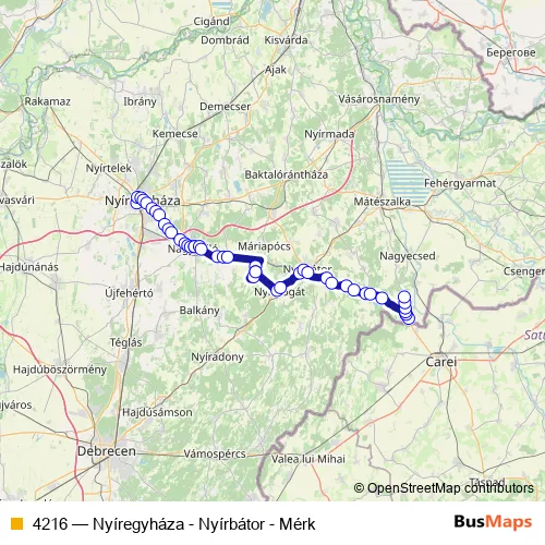Bus 4216 - Nyíregyháza - Nyírbátor - Mérk Schedule in Nyiregyhaza