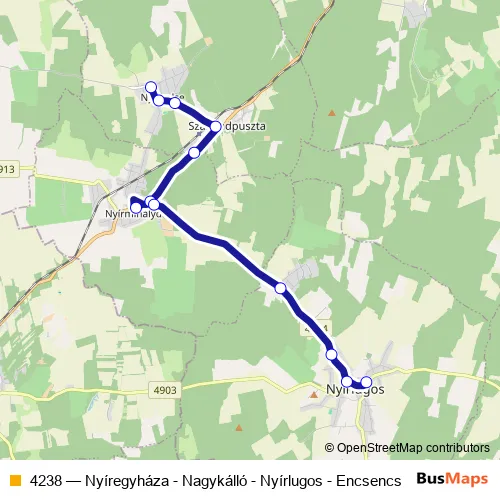 Click here to view the nearest 4238 - Nyíregyháza - Nagykálló - Nyírlugos - Encsencs bus stop.