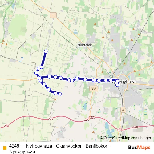 Bus 4248 - Nyíregyháza - Cigánybokor - Bánfibokor - Nyíregyháza: Full Schedule in Nyiregyhaza